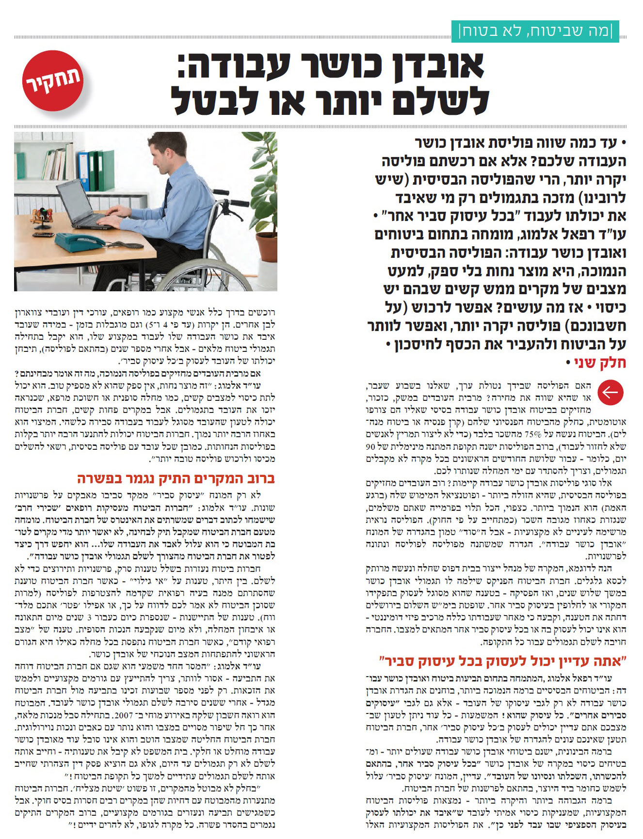עיינו בראיון שנערך עם עו"ד רפאל אלמוג במסגרת כתבה שפורסמה אודות ביטוחים אלו בתקשורת: